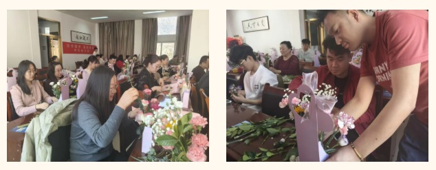 活动伊始,现场花香四溢,气氛温馨。在花艺师指导下,大家修剪枝叶、搭配色彩,将一束束普通的鲜花化作眼前富有个性且生机盎然的艺术品。尤为温馨的是,多位男同胞也兴致盎然地加入其中,他们专注配色、略显笨拙却认真的身影,与娇艳鲜花相映成趣,为现场增添了别样的和谐活力。